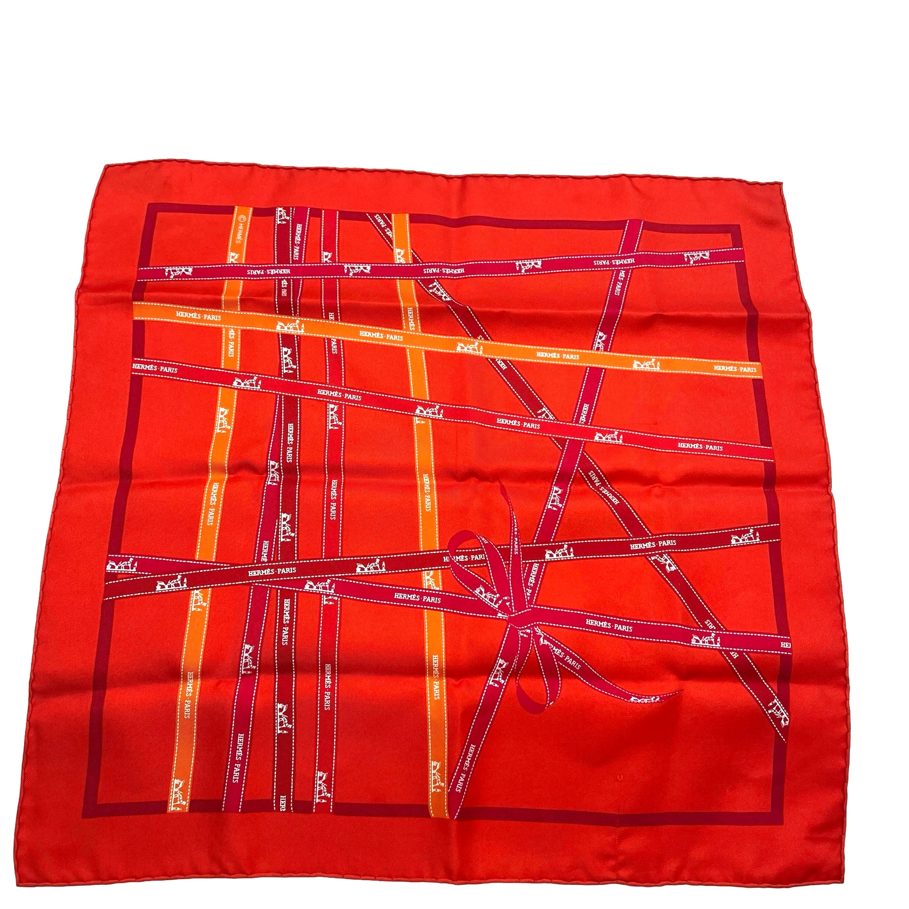 Mascada Hèrmes Carré 45, de seda color rojo, rosa y naranja. En muy buen estado.