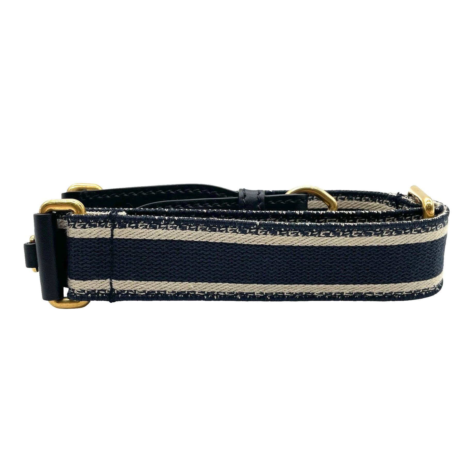 Strap Dior, de tela color azul y beige con logo bordado y herrajes dorados. Con uso, en buen estado.