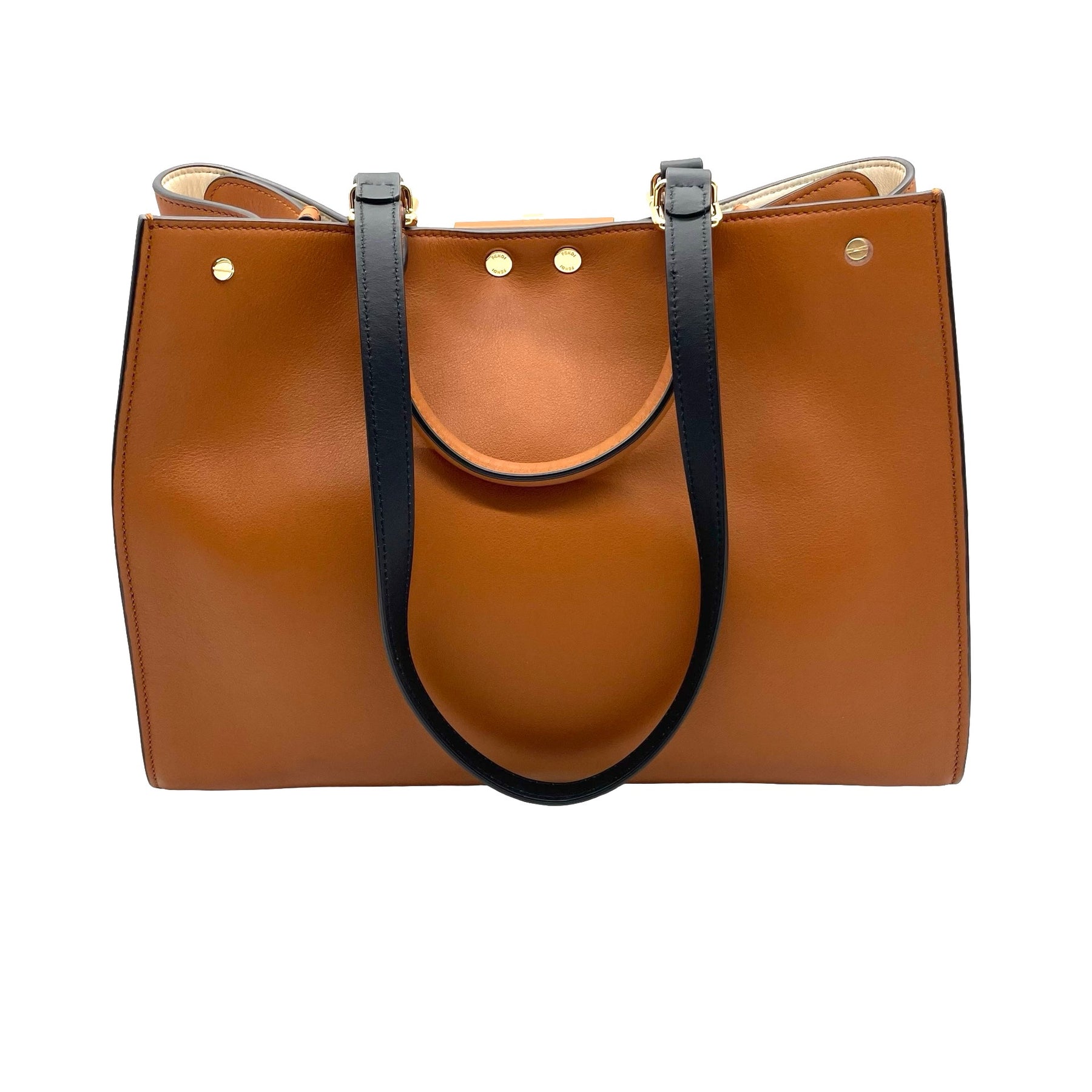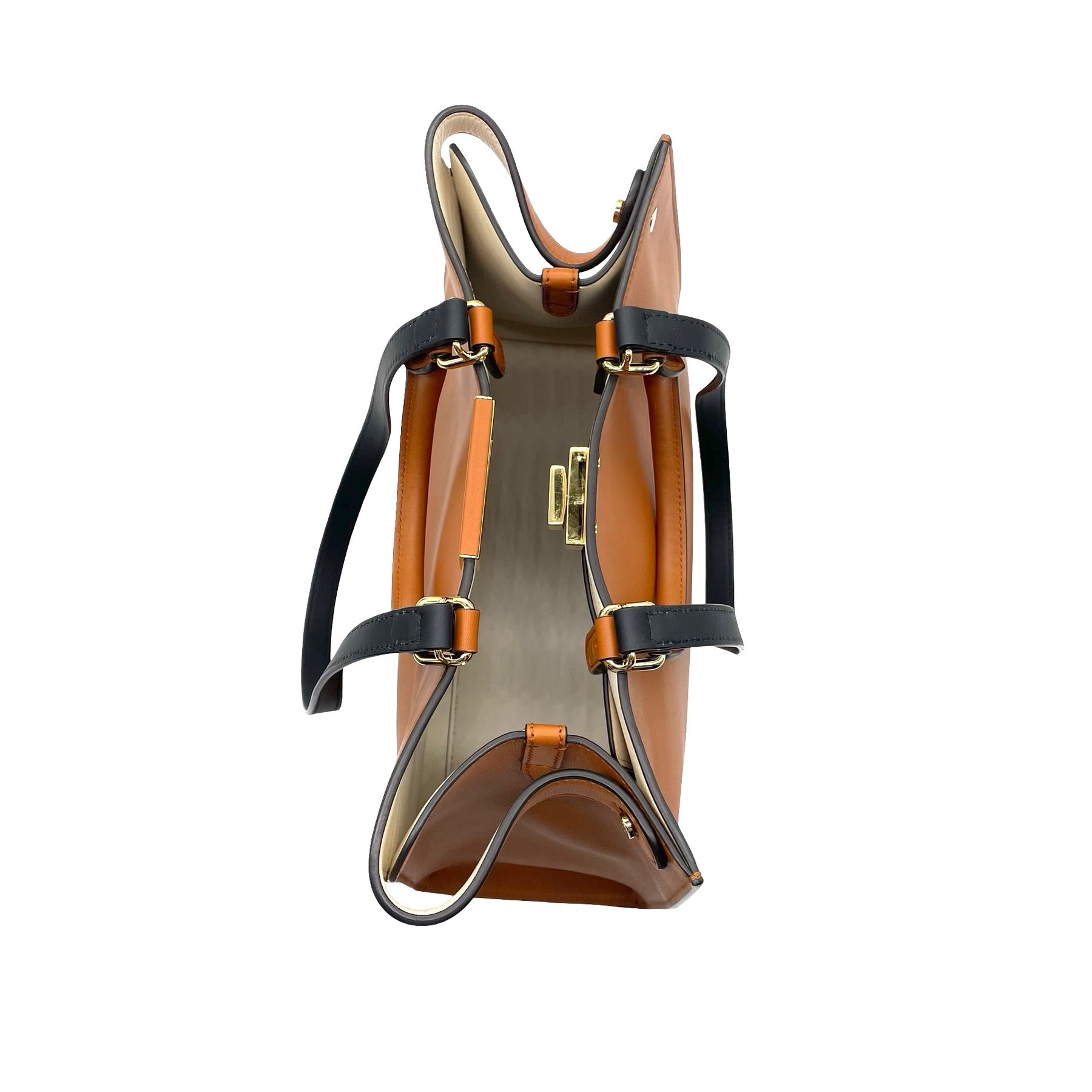 Bolsa Fendi Vitello Seta Century Small Peekaboo X-Tote, de piel color Brandy con detalles de piel en color negro y herrajes en dorado. Con ligero desgaste en esquinas. Con uso, en buen estado.