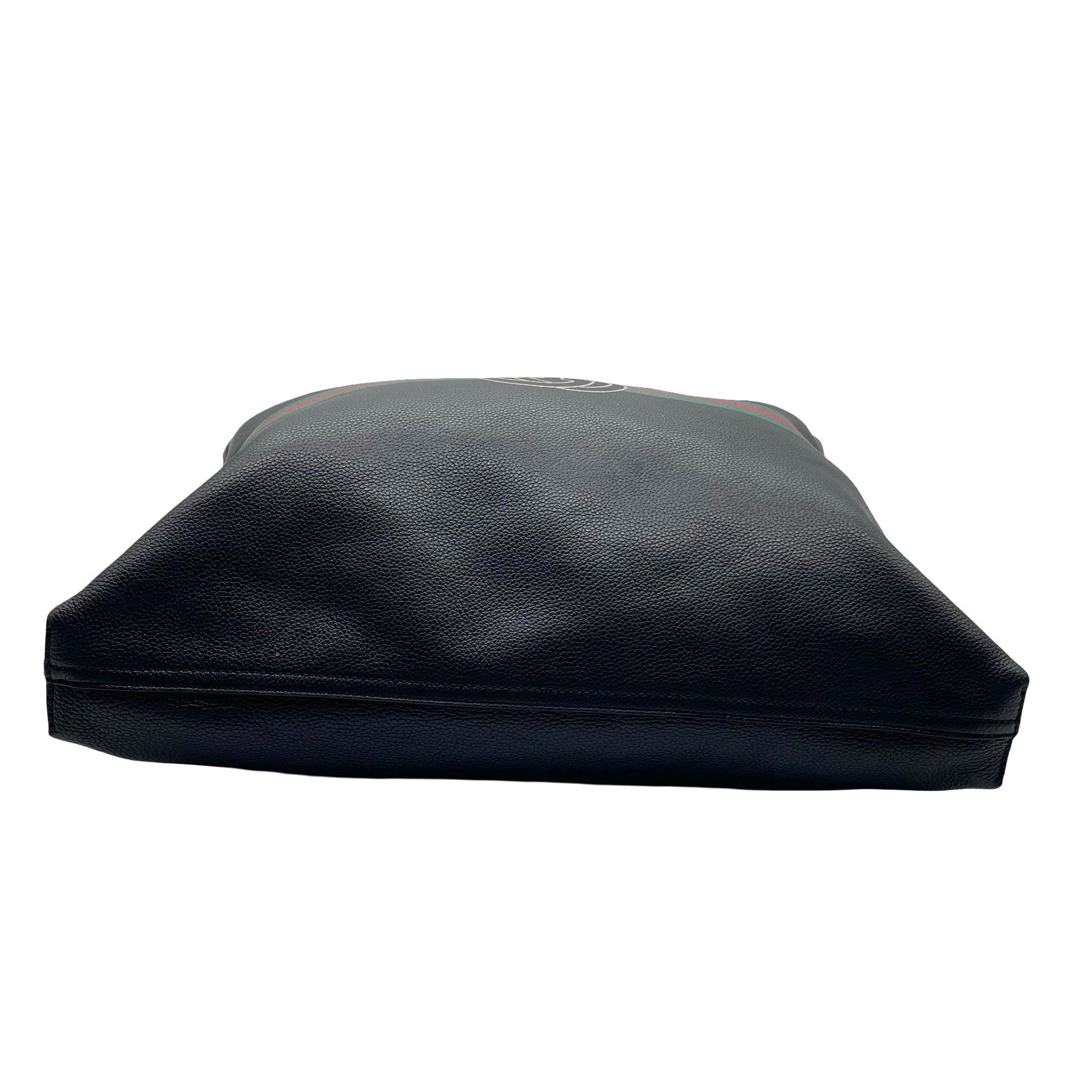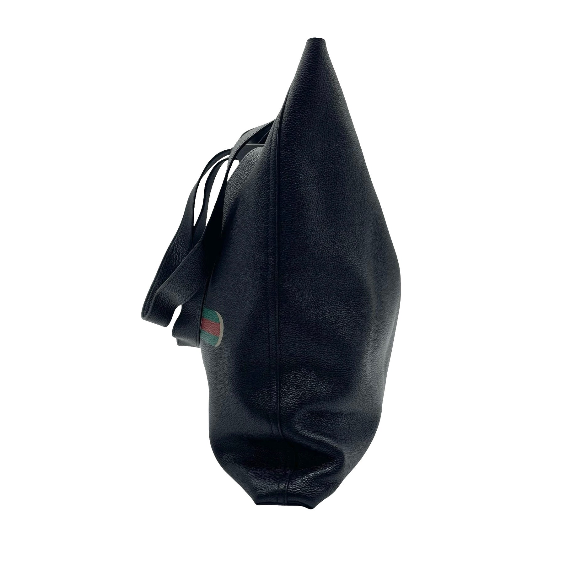 Bolsa Gucci, en piel color negro con logo al frente y asas de piel al hombro. Con uso, en buen estado.