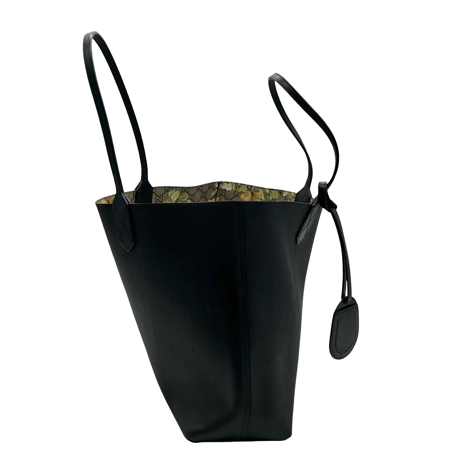 Bolsa Gucci Blooms, Reversible en Canvas GG Supreme con print floral verde y dos asas al hombro. Con uso, en buen estado.