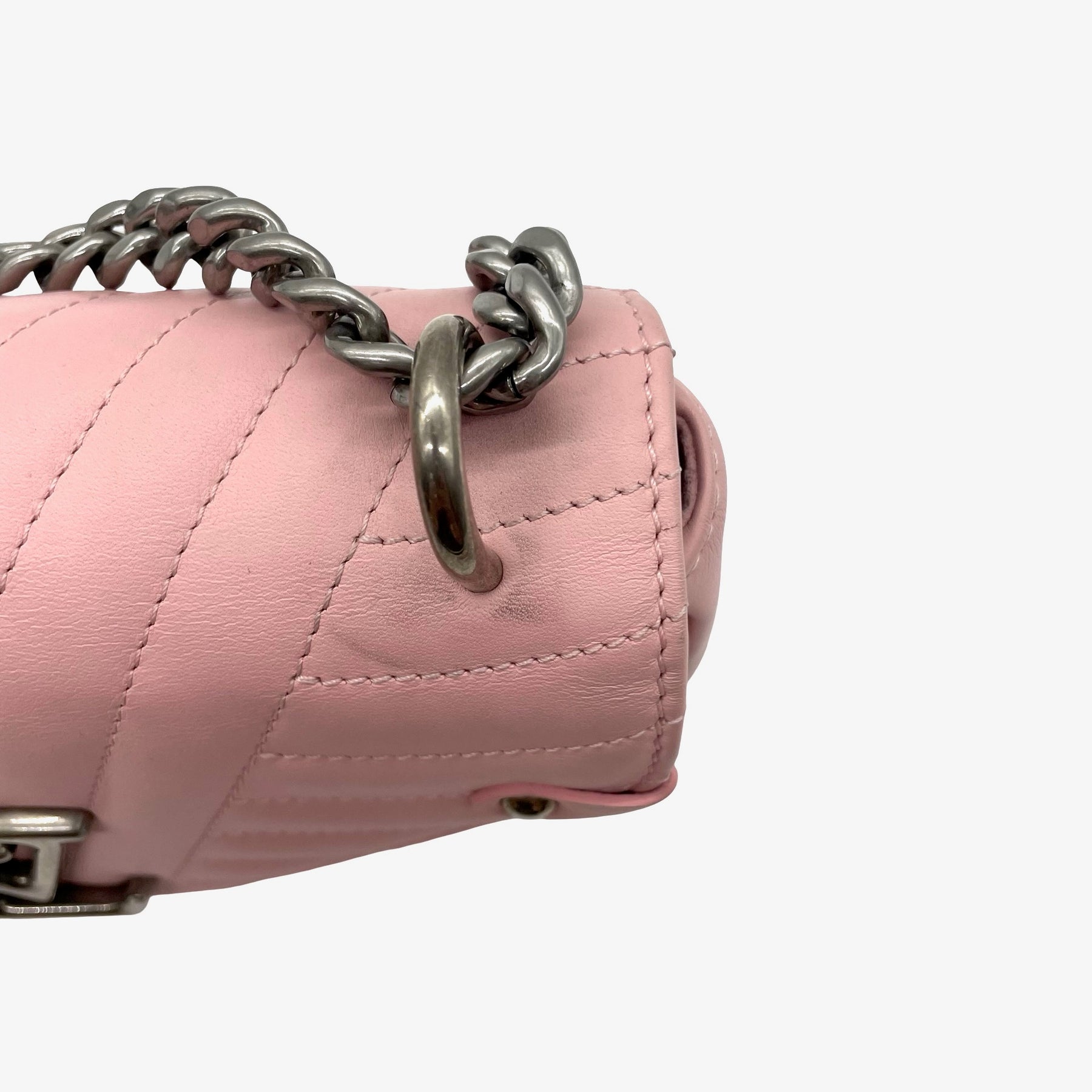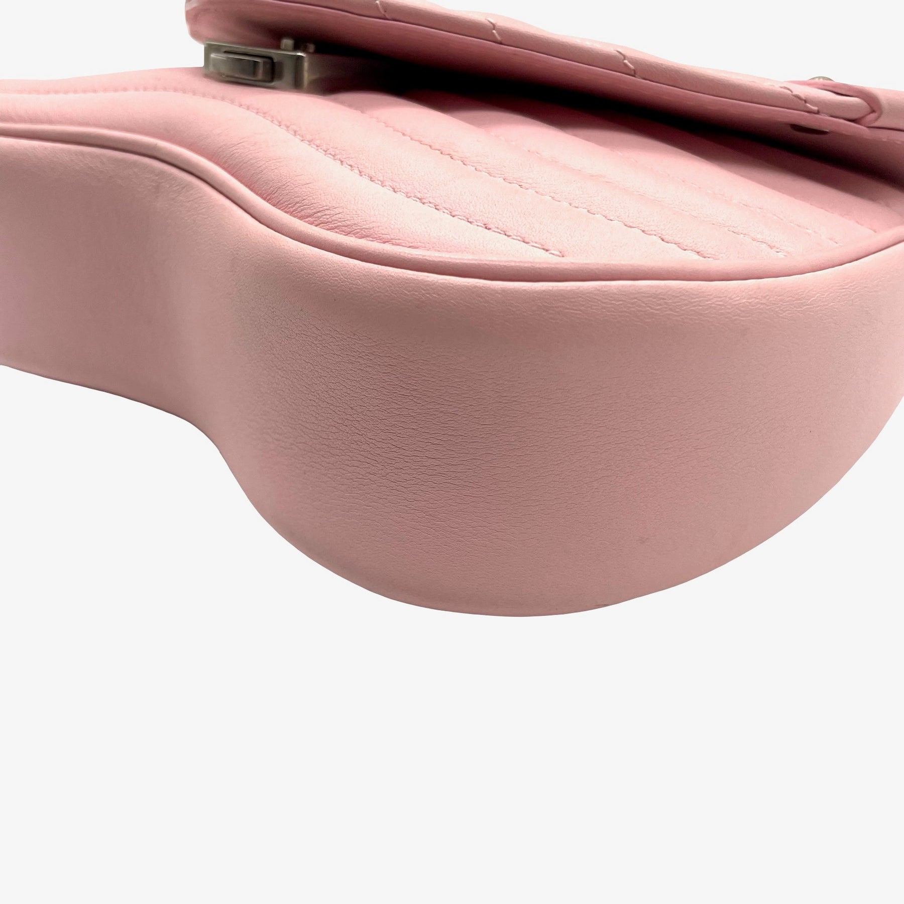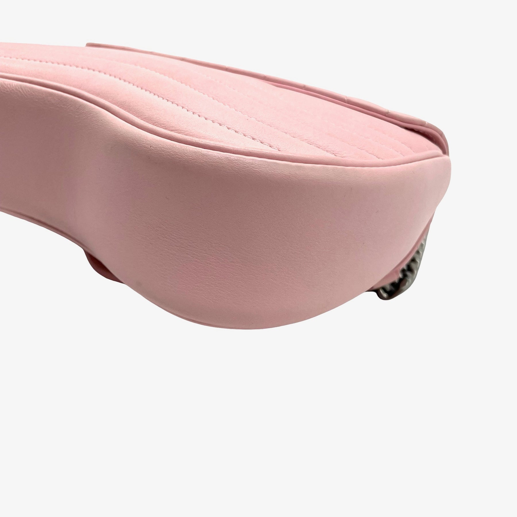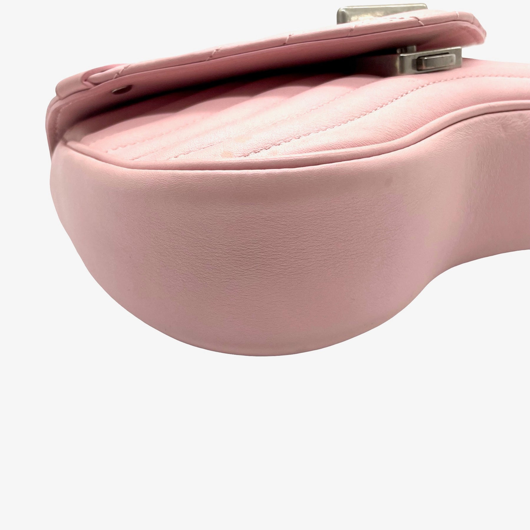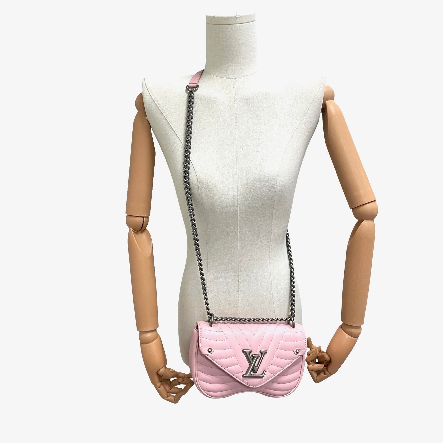 Bolsa Louis Vuitton New Wave Chain PM, de piel color rosa, asa de mano con logo grabado multicolor, cadena al hombro y herrajes en plateado. Con desgaste en piel por herrajes, desgaste de piel en orillas y pequeñas manchas.