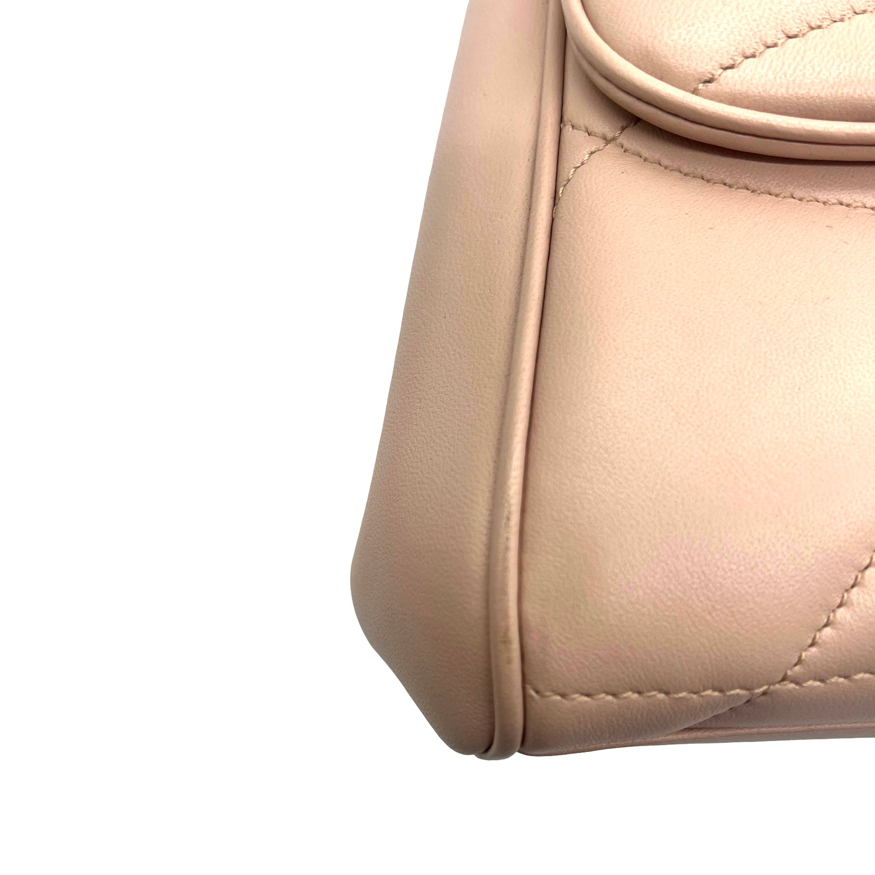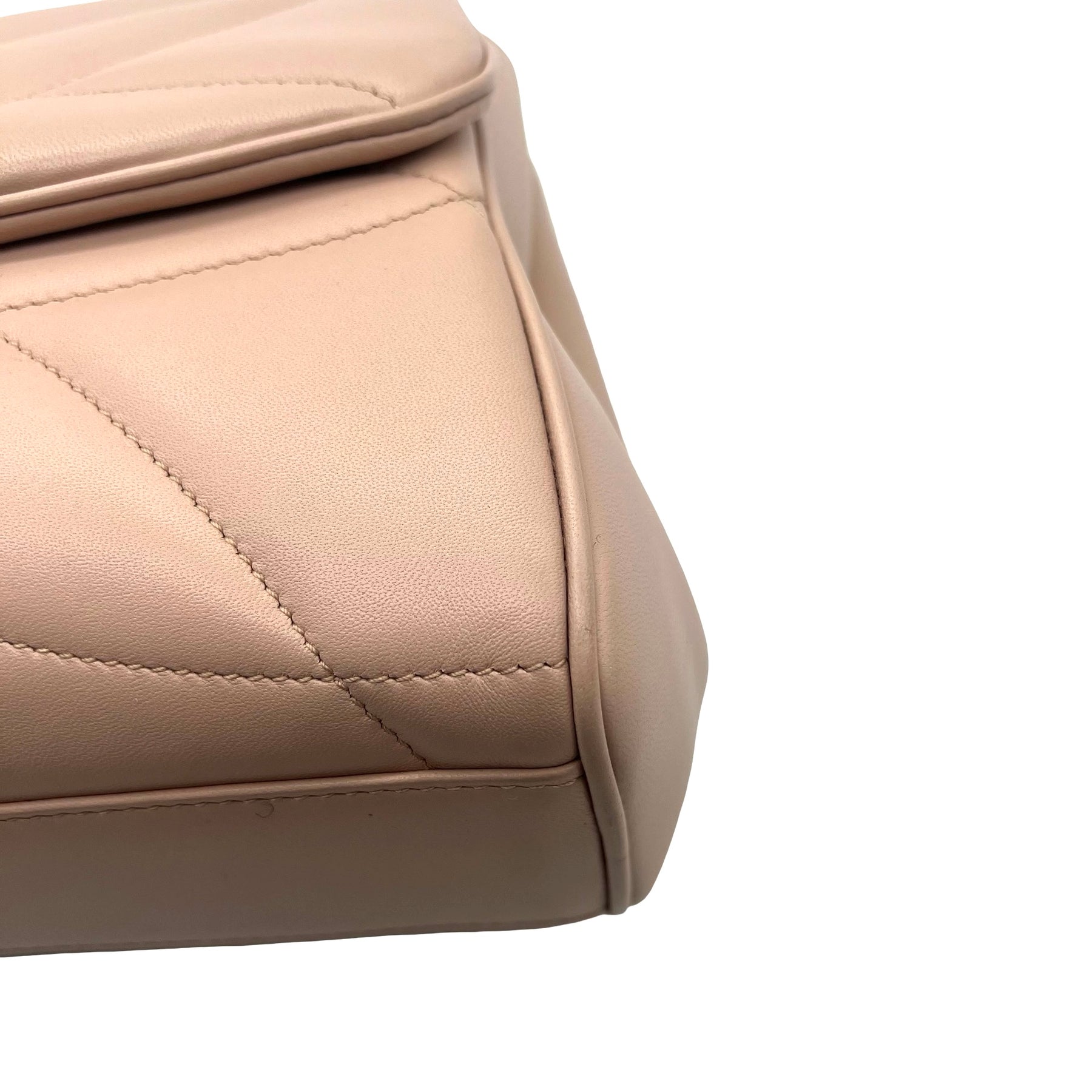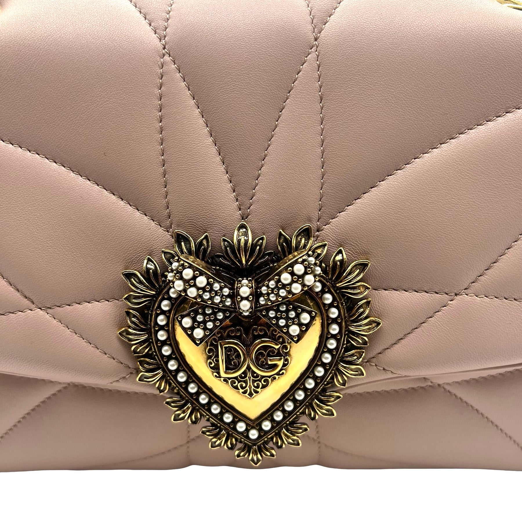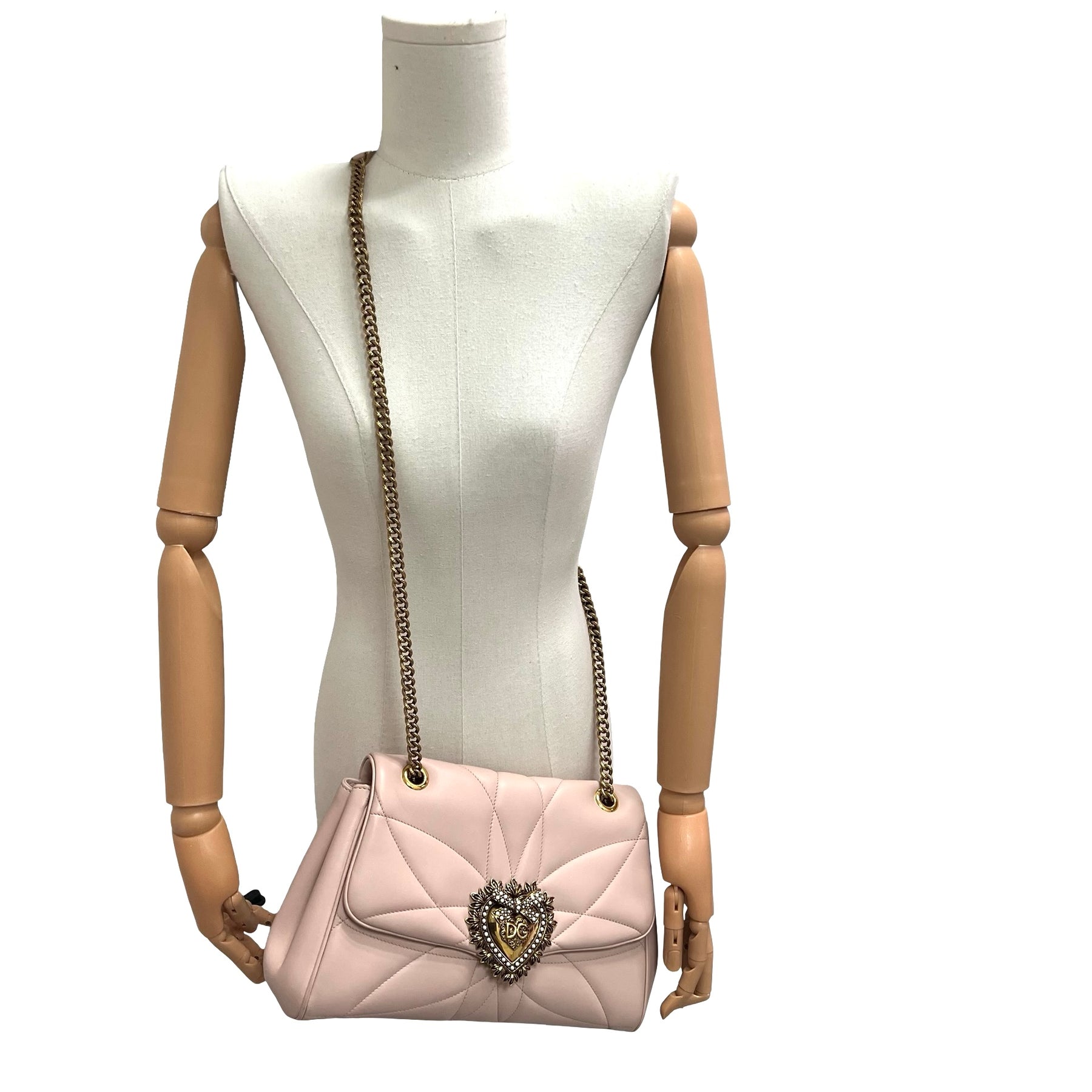 Bolsa Dolce & Gabbana Devotion, de piel napa acolchada color rosa palo, correa al hombro y herrajes en dorado. Con ligero desgaste en esquinas, en buen estado.