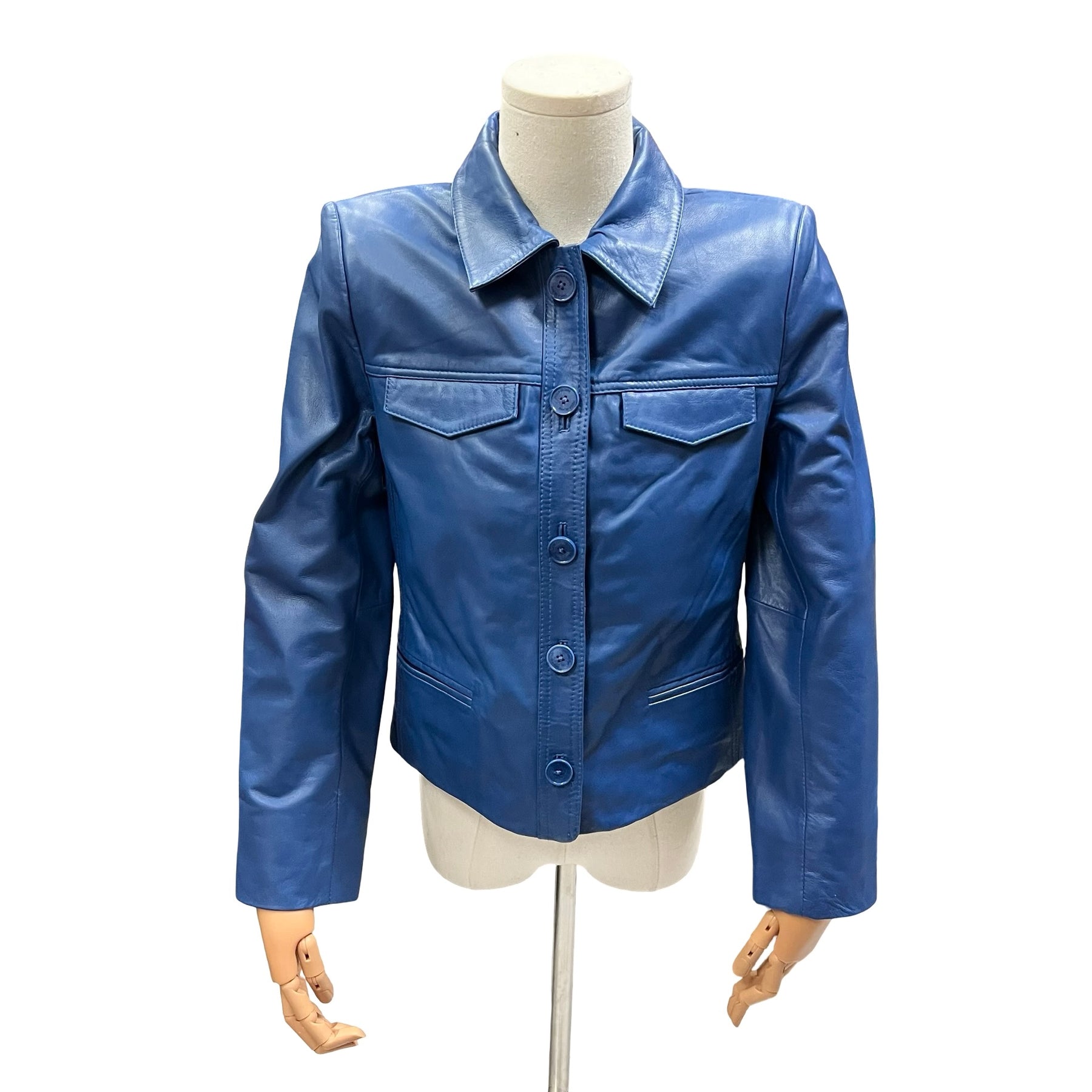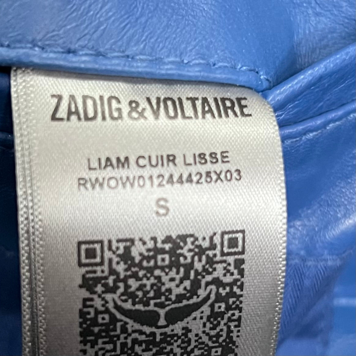 Chamarra Zadig & Voltaire, en piel color azul con botonadura al frente y bolsillos. Nueva.
