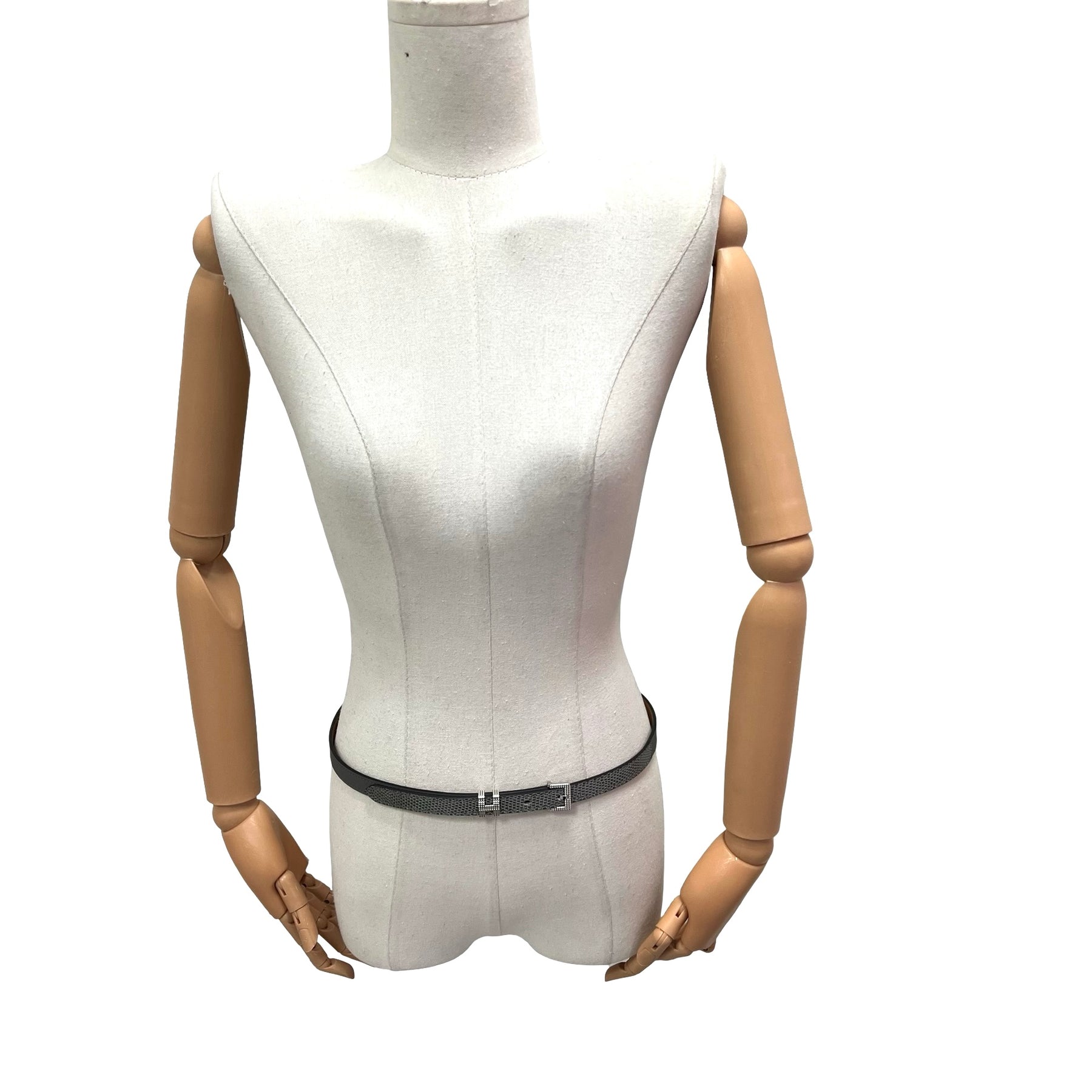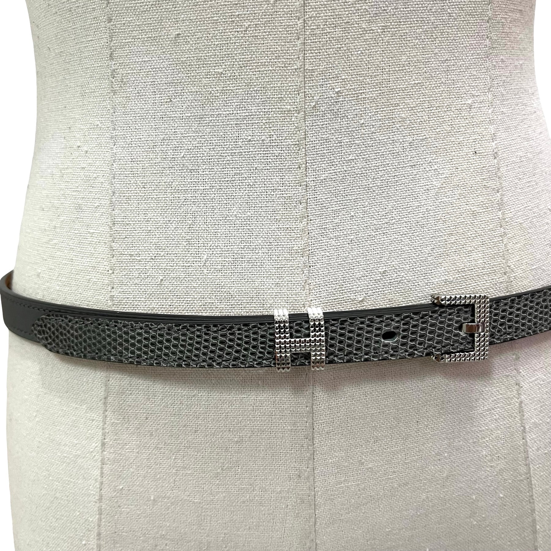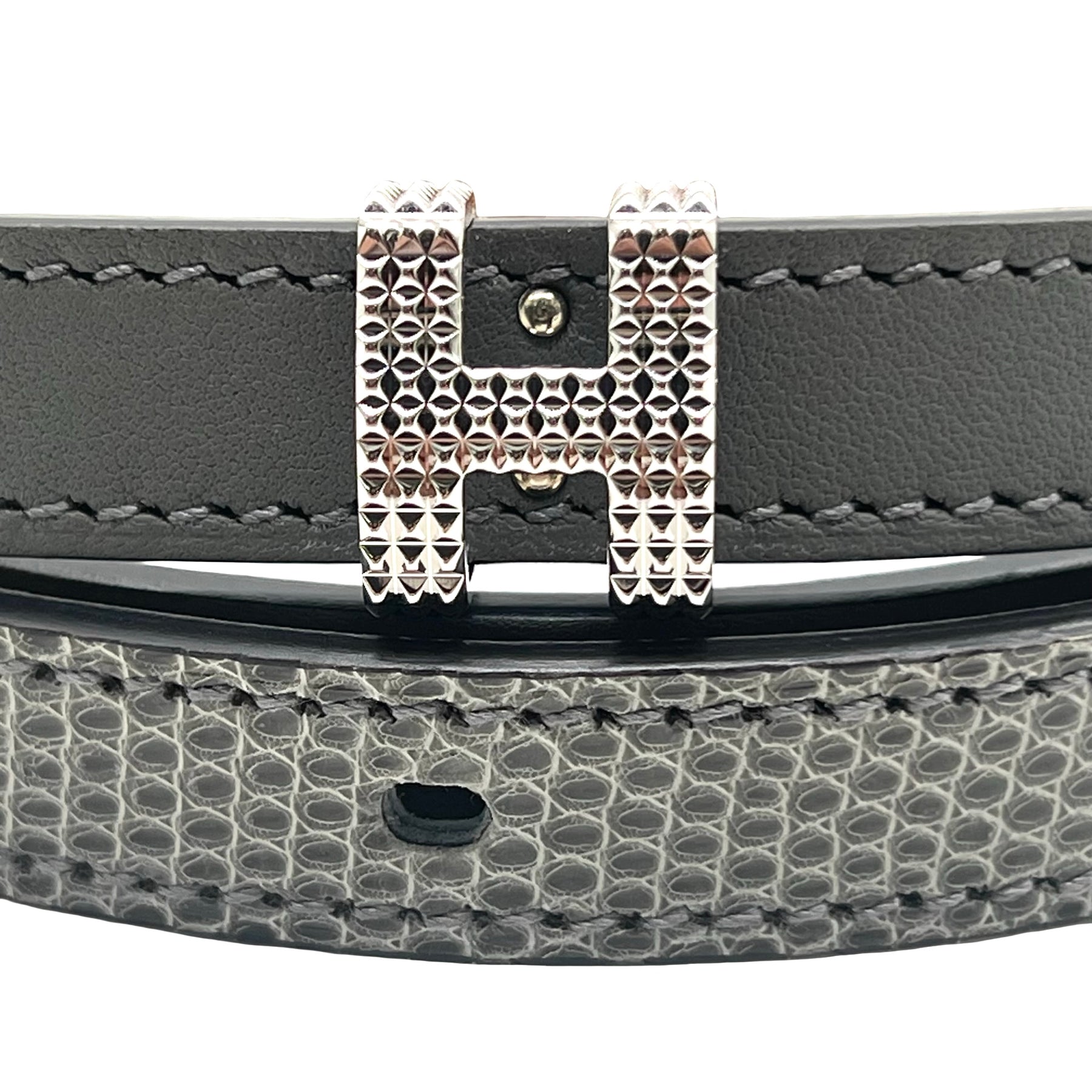 Cinturón de Hermès pop H Guilloché de cintura, de piel Lambskin y Lizzard color Gris Mayer, con hebilla de metal texturizado en forma de "H". Nuevo.