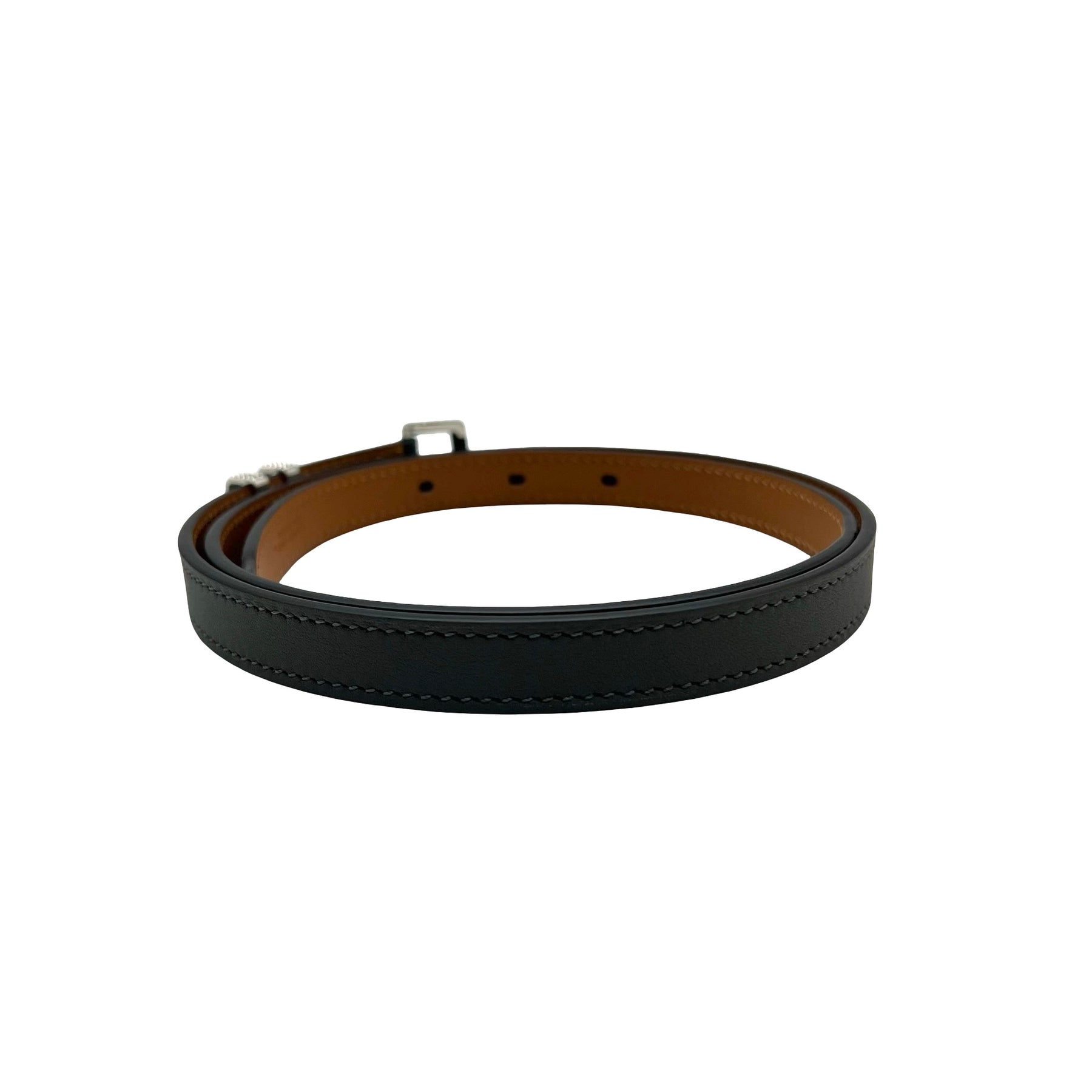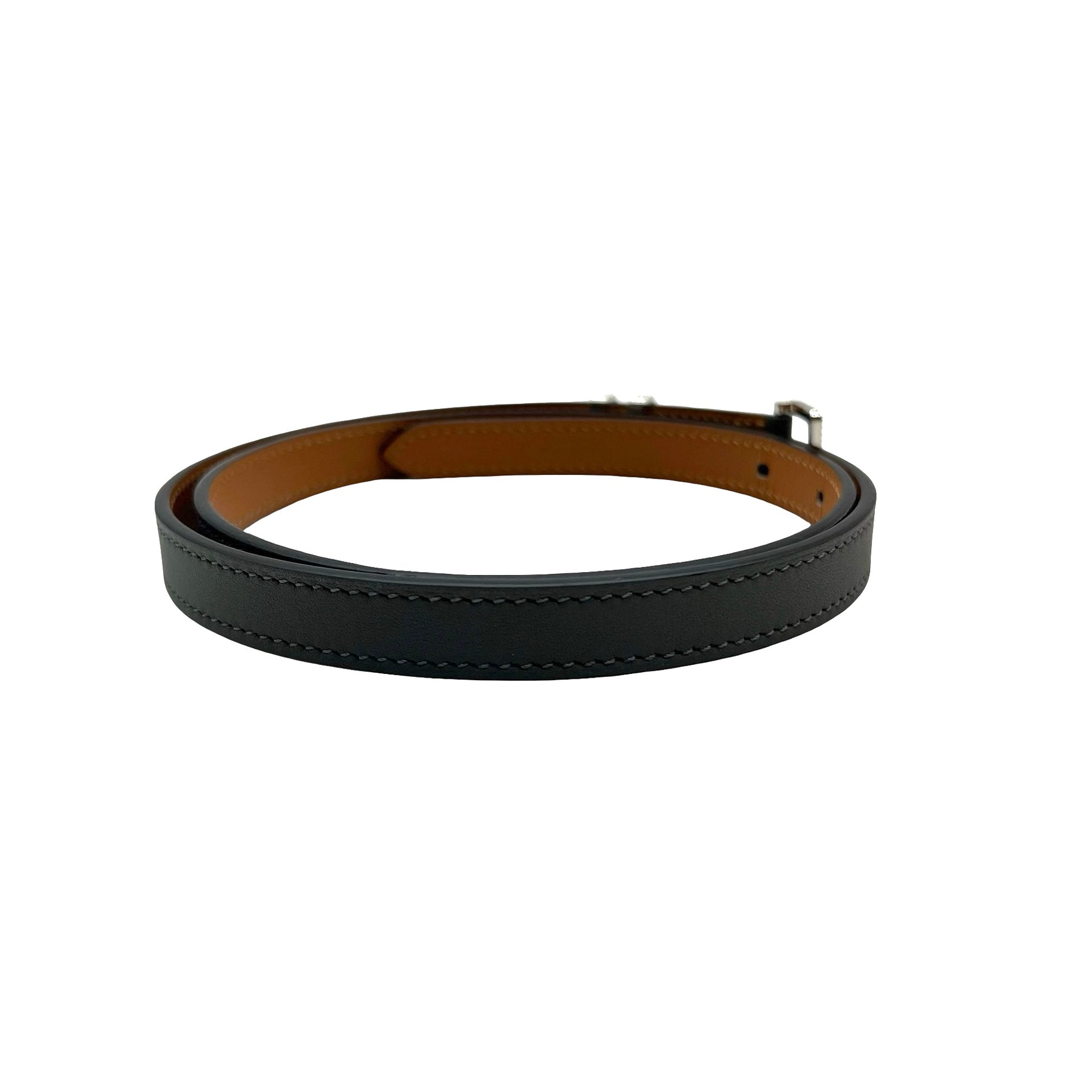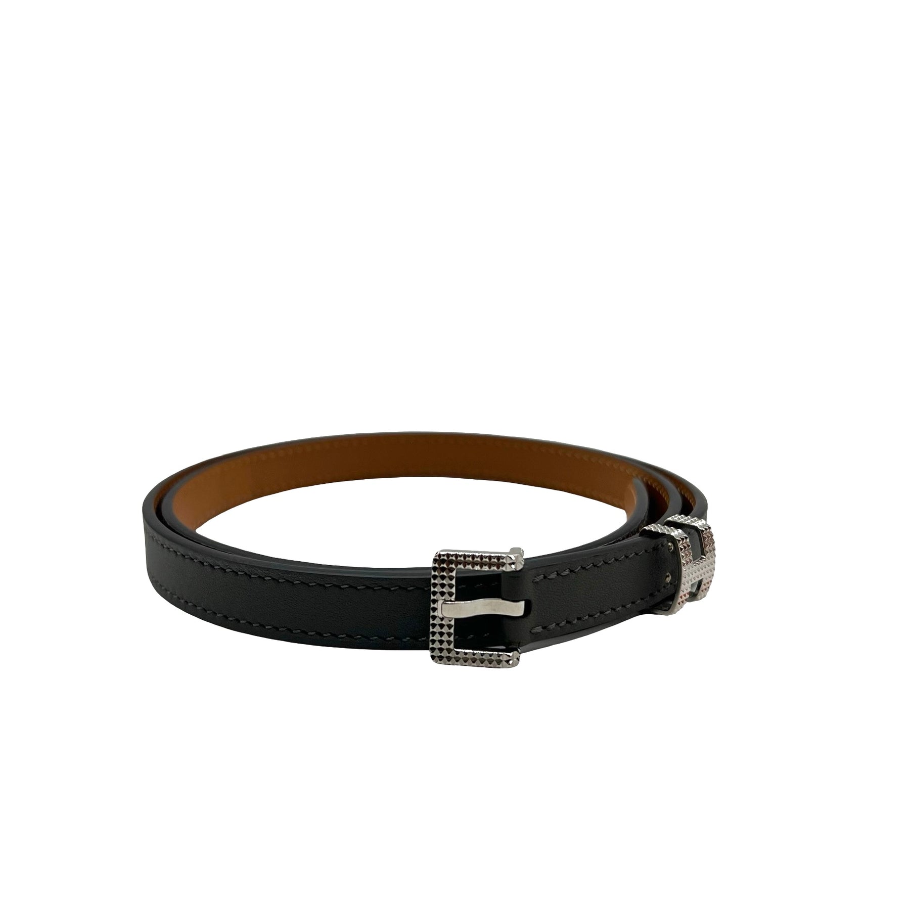 Cinturón de Hermès pop H Guilloché de cintura, de piel Lambskin y Lizzard color Gris Mayer, con hebilla de metal texturizado en forma de "H". Nuevo.
