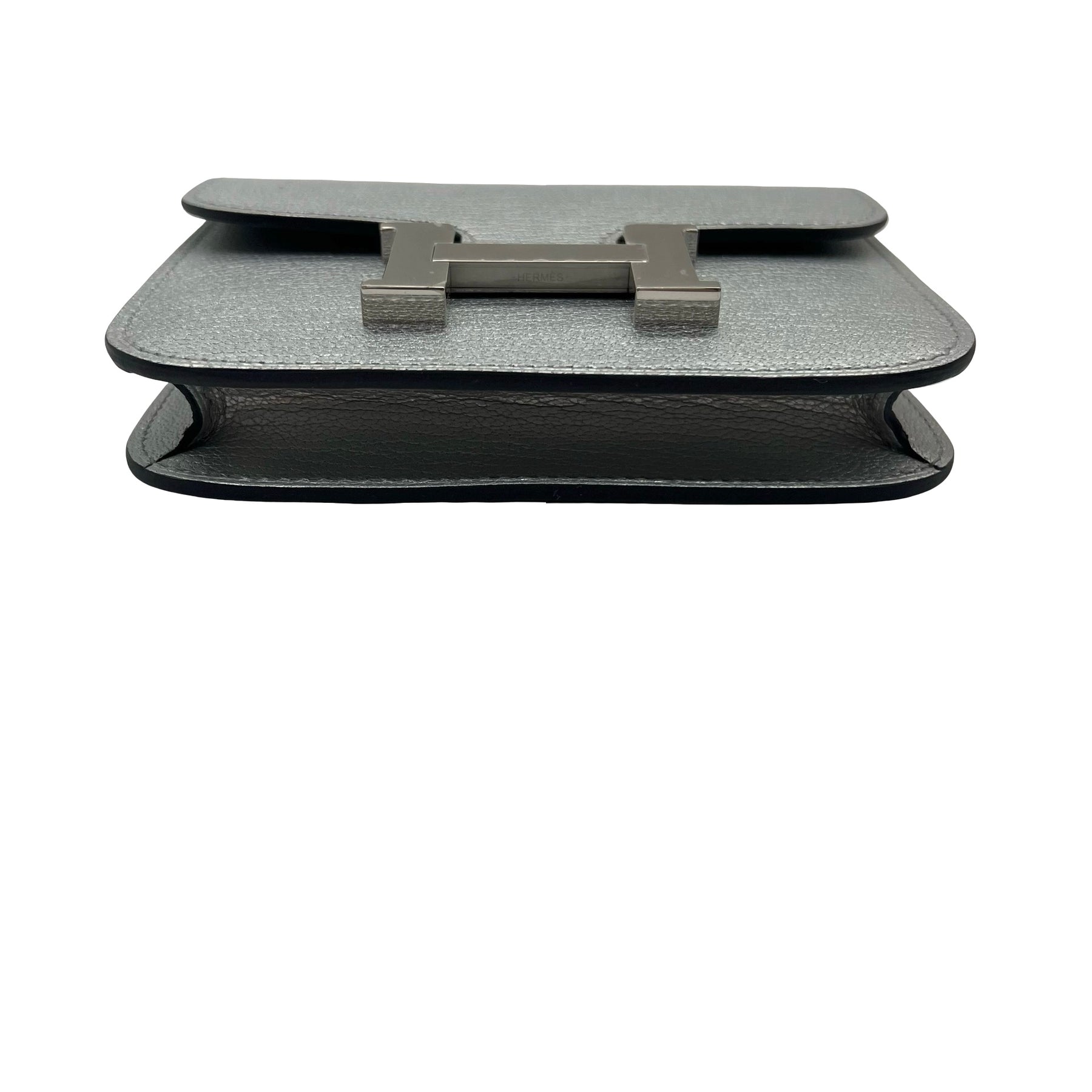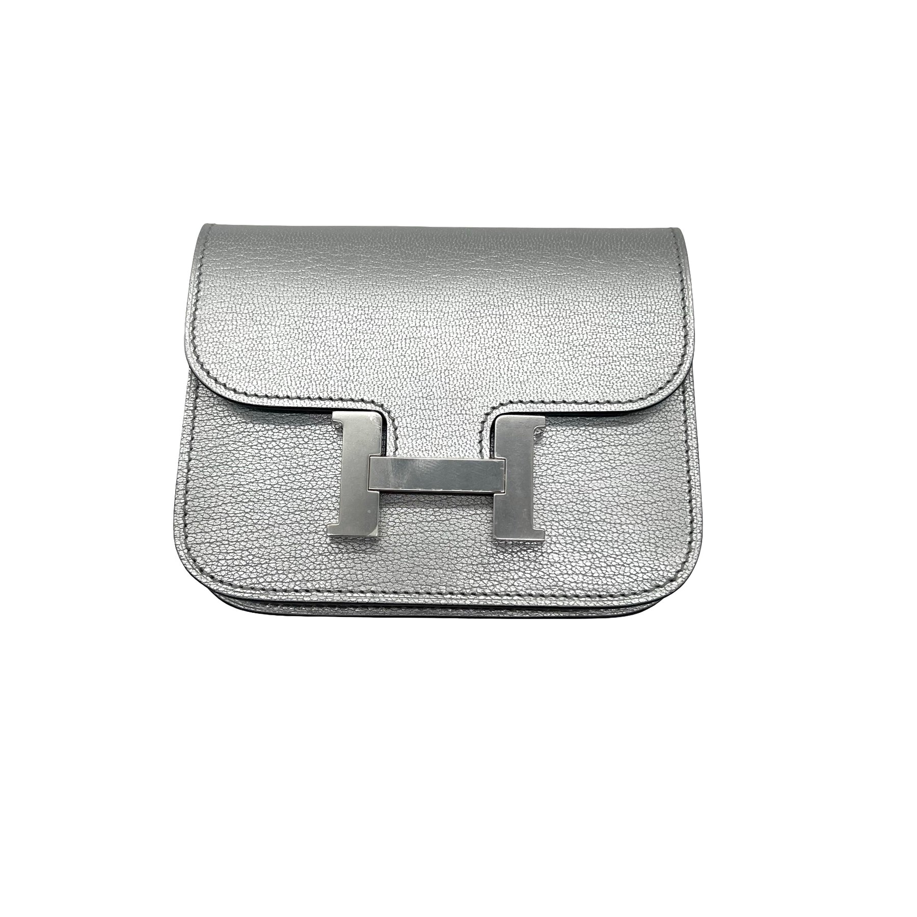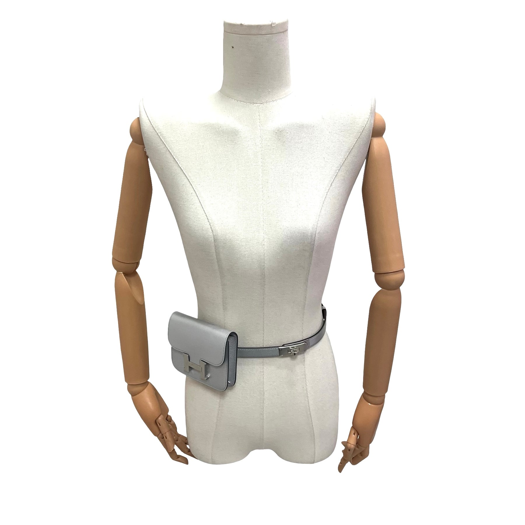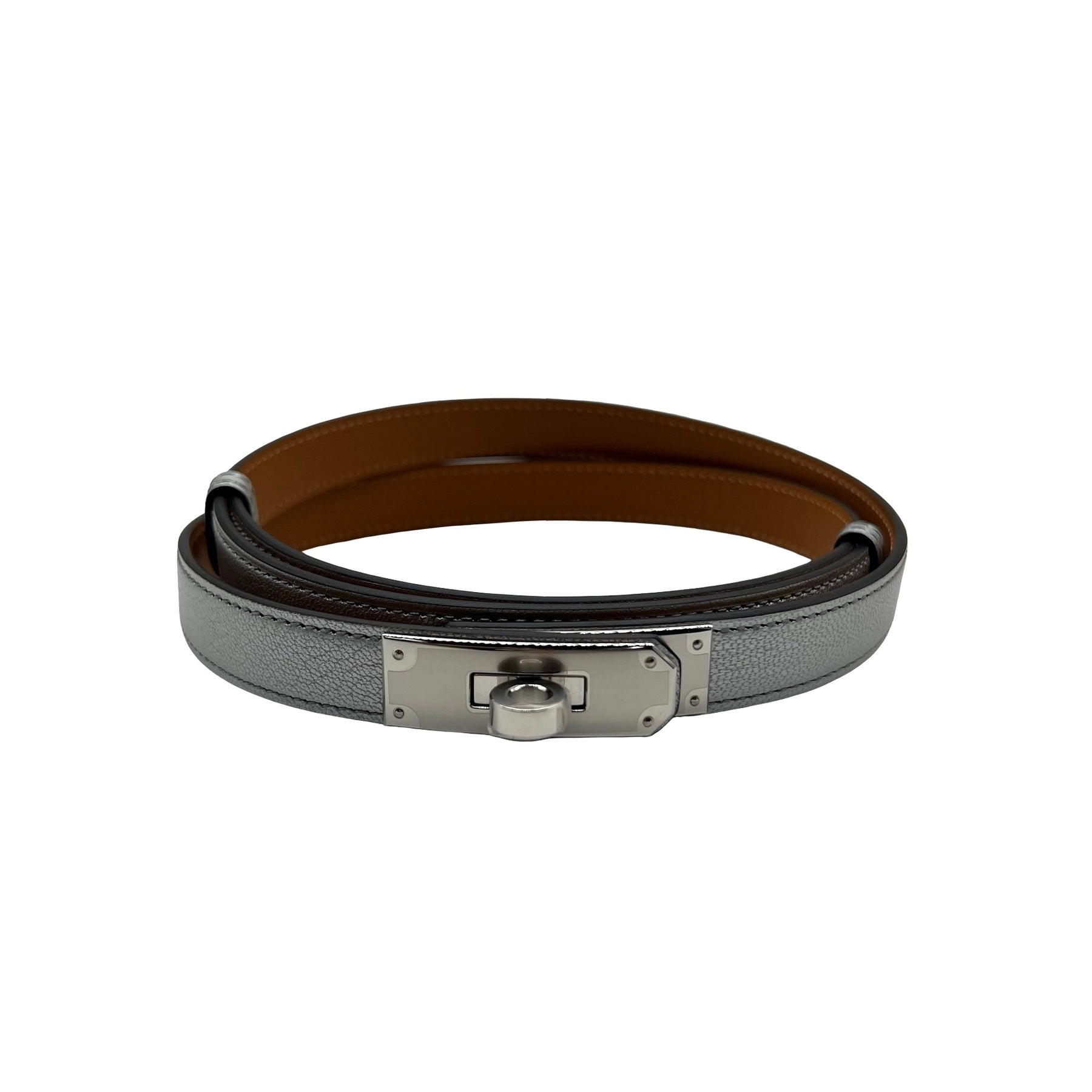 Cinturón Hermès Kelly 18 y Cartera Constance Slim, en piel Togo color Argent, con herrajes en Palladium (PHW). Nuevo.