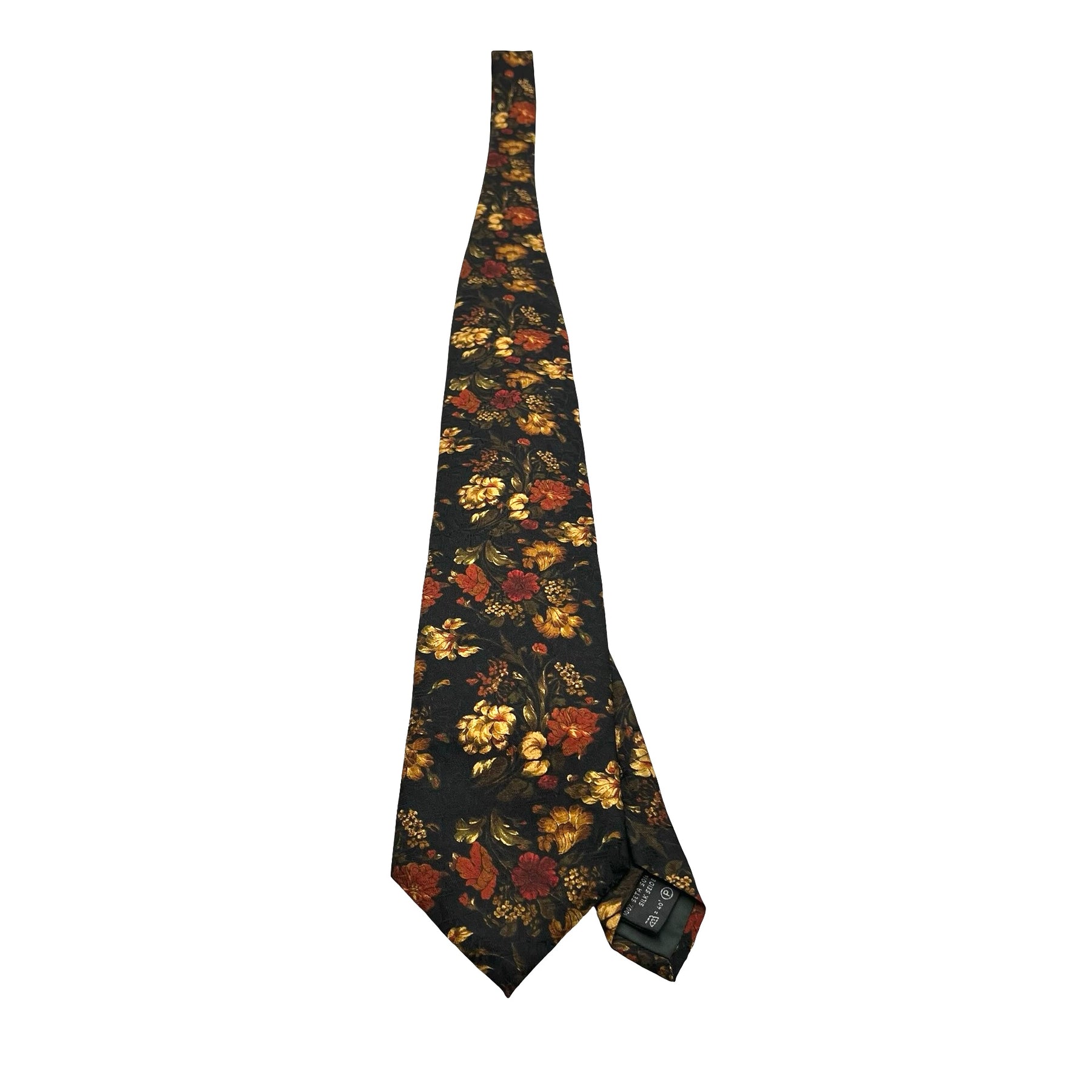 Corbata Ermenegildo Zegna, de seda color negro con estampado floral multicolor. Con uso, en buen estado.