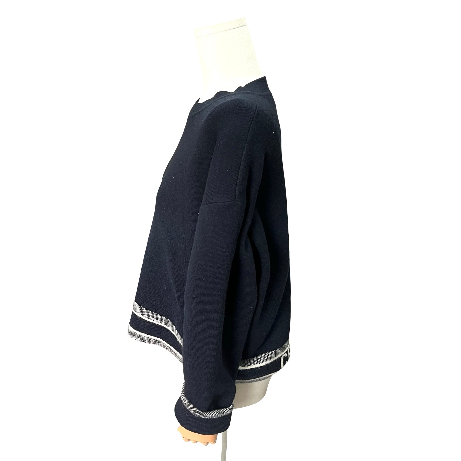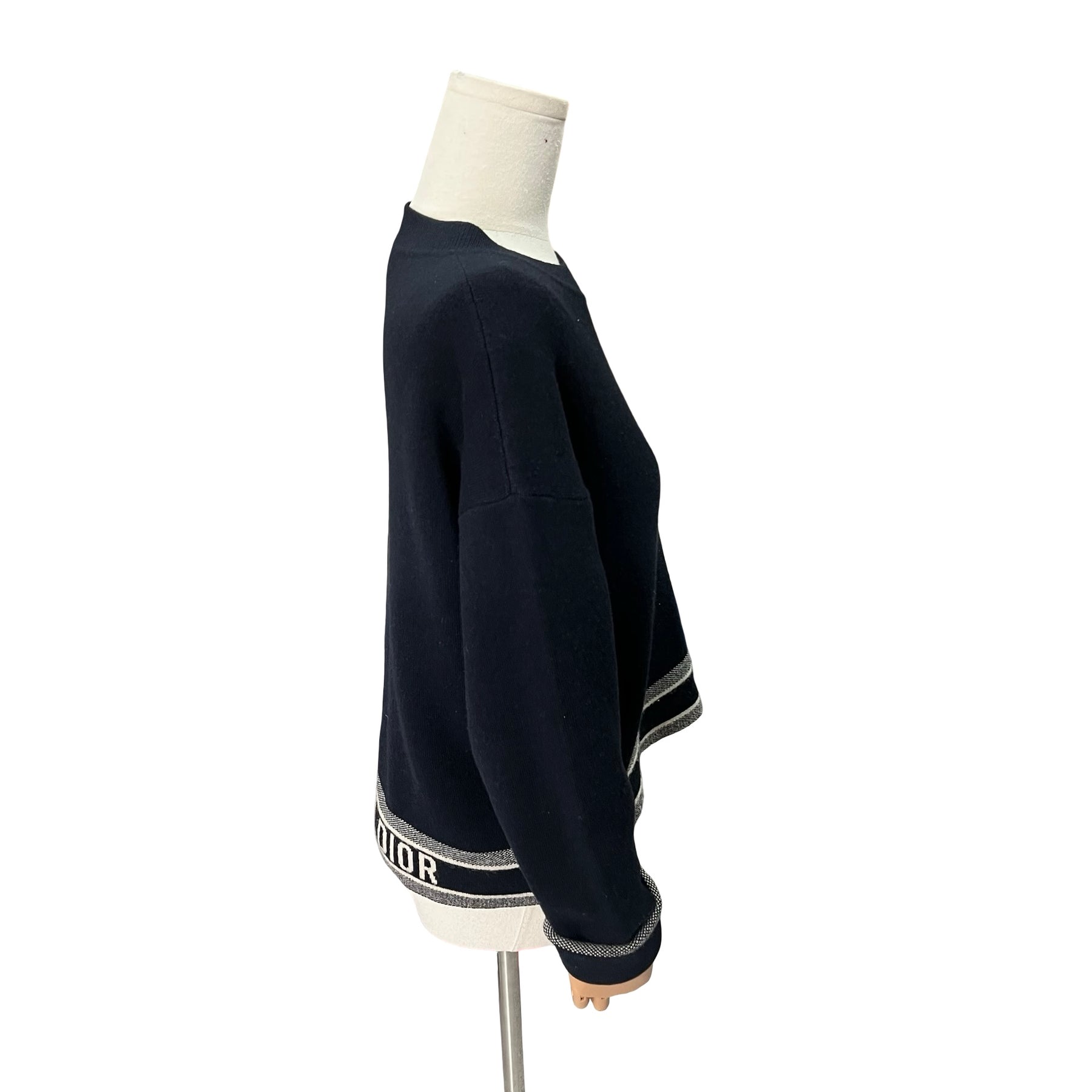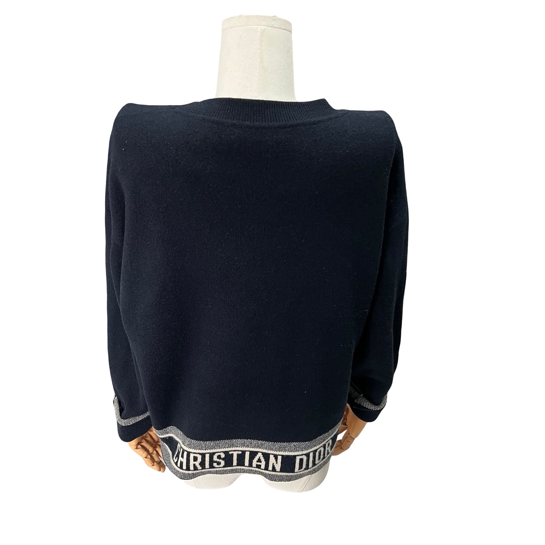 Suéter Dior, de Cashmere color azul, con franjas con logo en la parte de abajo. Con uso, en buen estado.