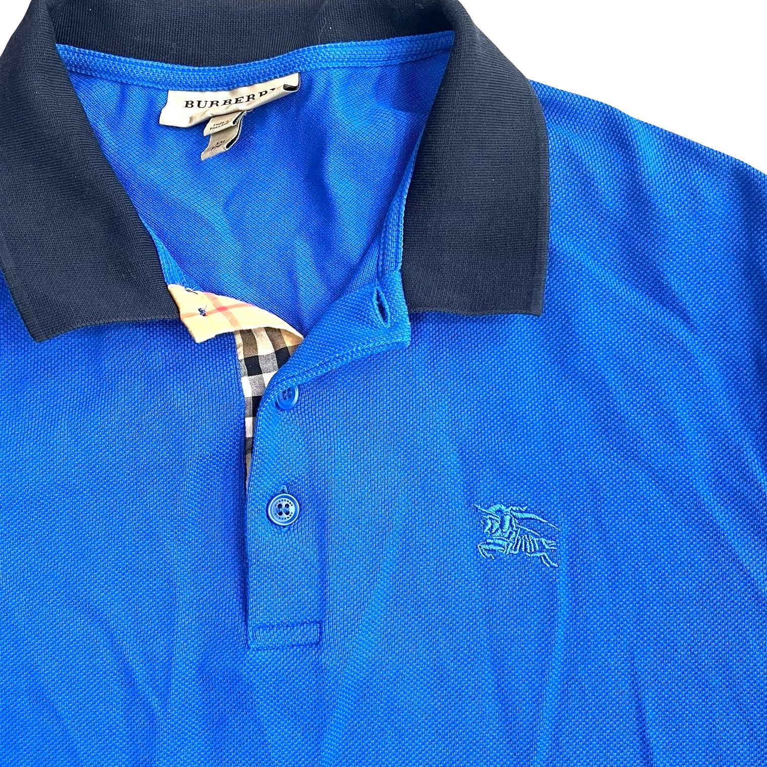 Camisa Burberry Hombre,  de algodón color azul rey, con botones al frente y cuello tipo polo. Con uso, en buen estado.