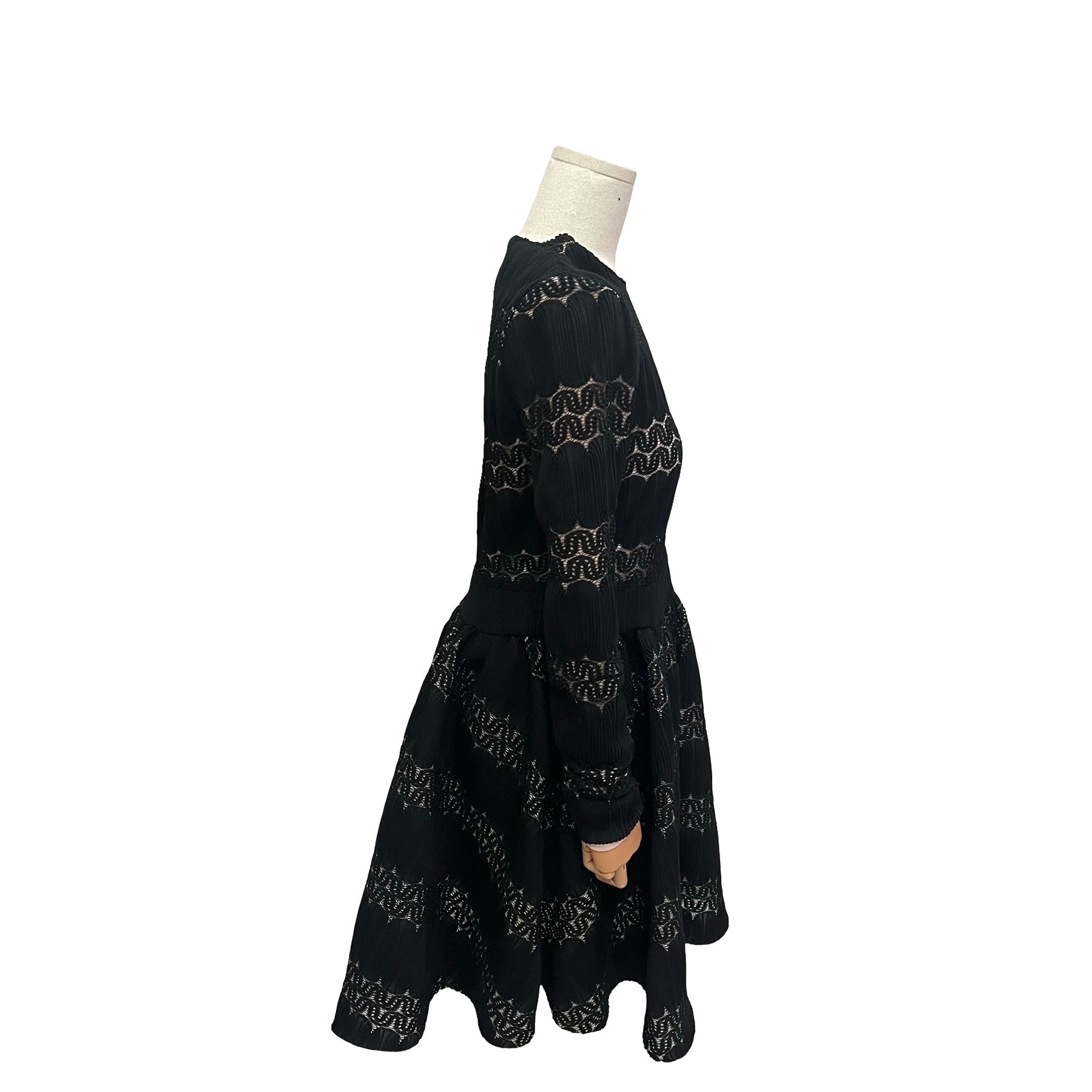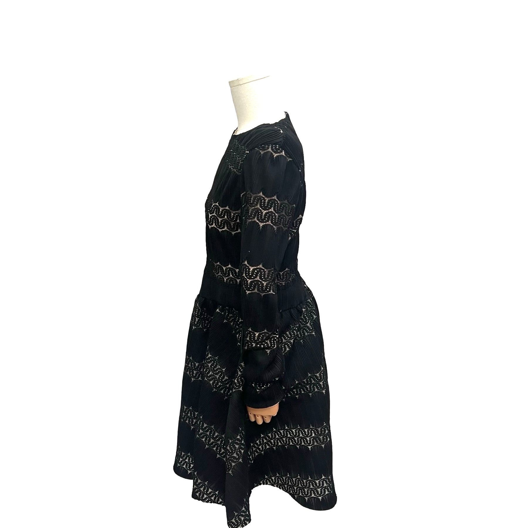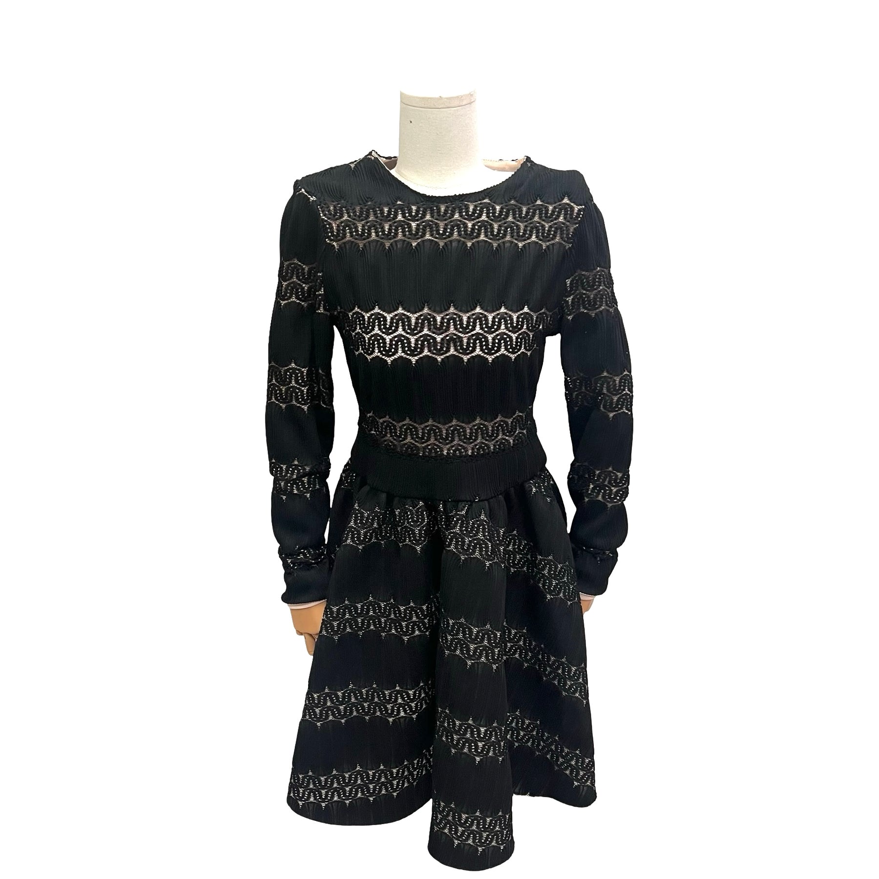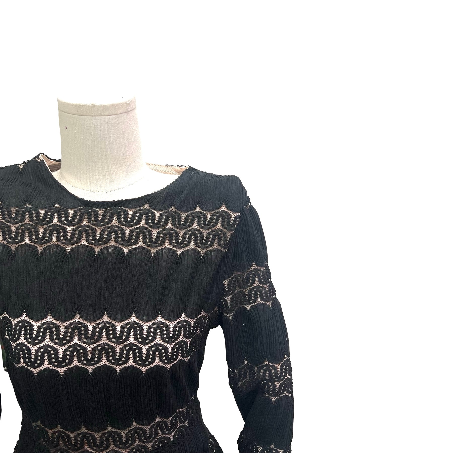 Vestido Maje color negro, con fondo nude y transparencias, cierre completo en la parte trasera de la espalda. Con uso, en muy buen estado.