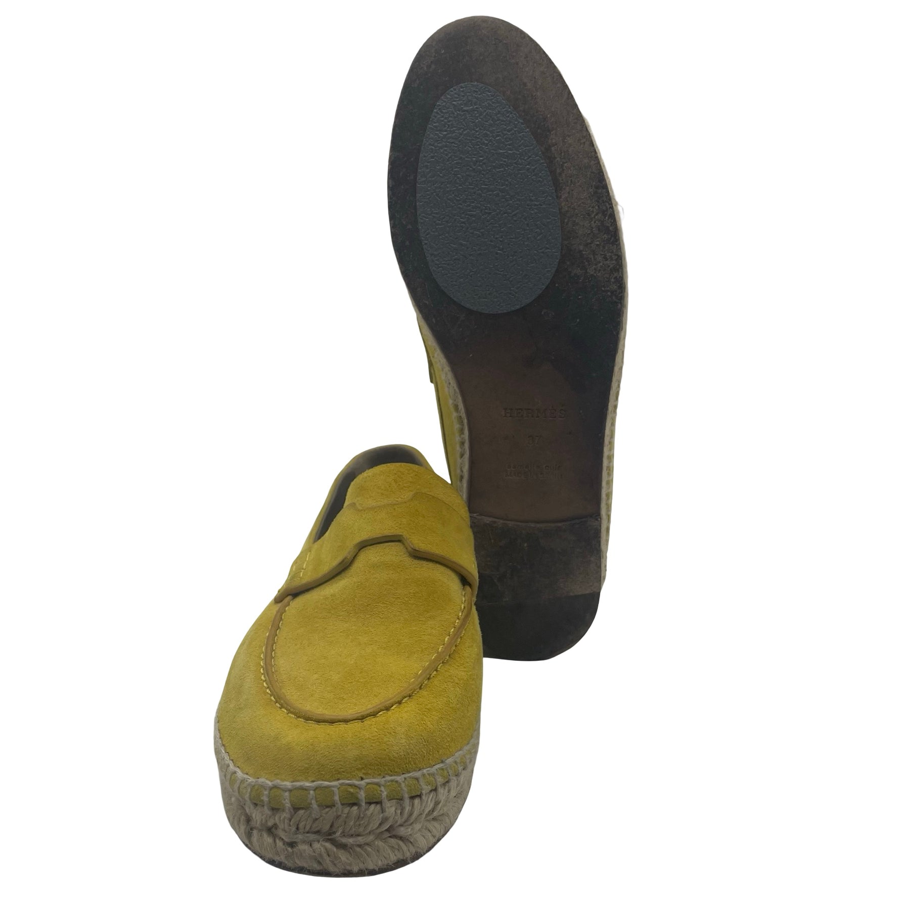 Alpargatas Hermès, de ante color amarillo, con suela de yute. Con uso en buen estado.