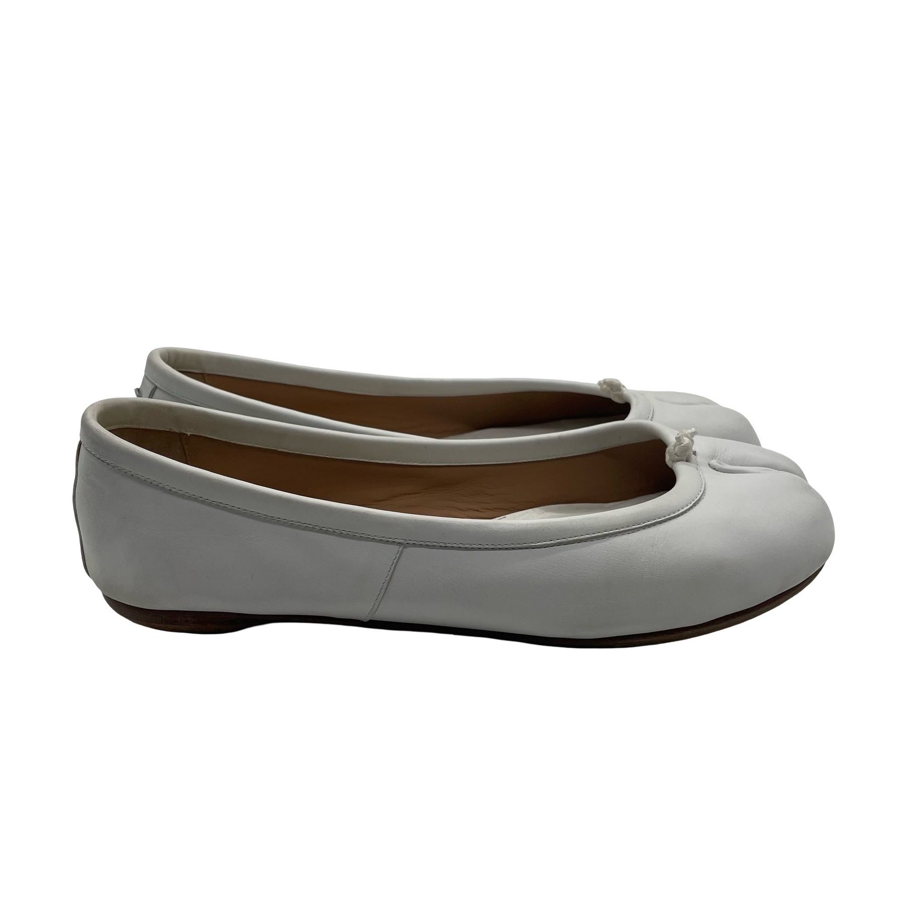 Flats Tabi Maison Margiela, de piel color blanco y suela sobrepuesta. Con desgaste en parte trasera, en buen estado.
