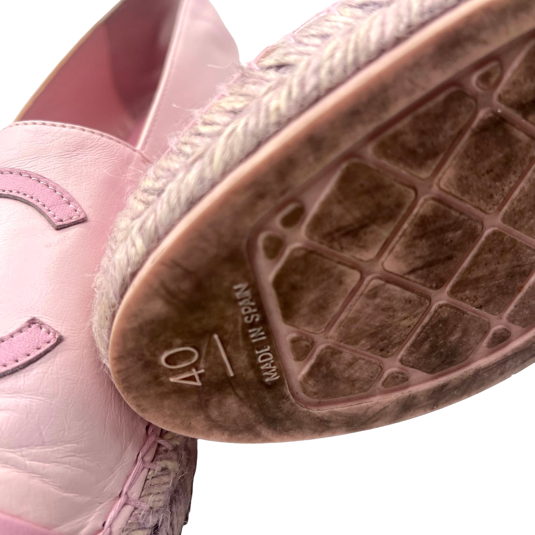 Alpargatas Chanel, de piel y yute color rosa palo, con CC en en frente y punta color lila. Con desgaste de uso.